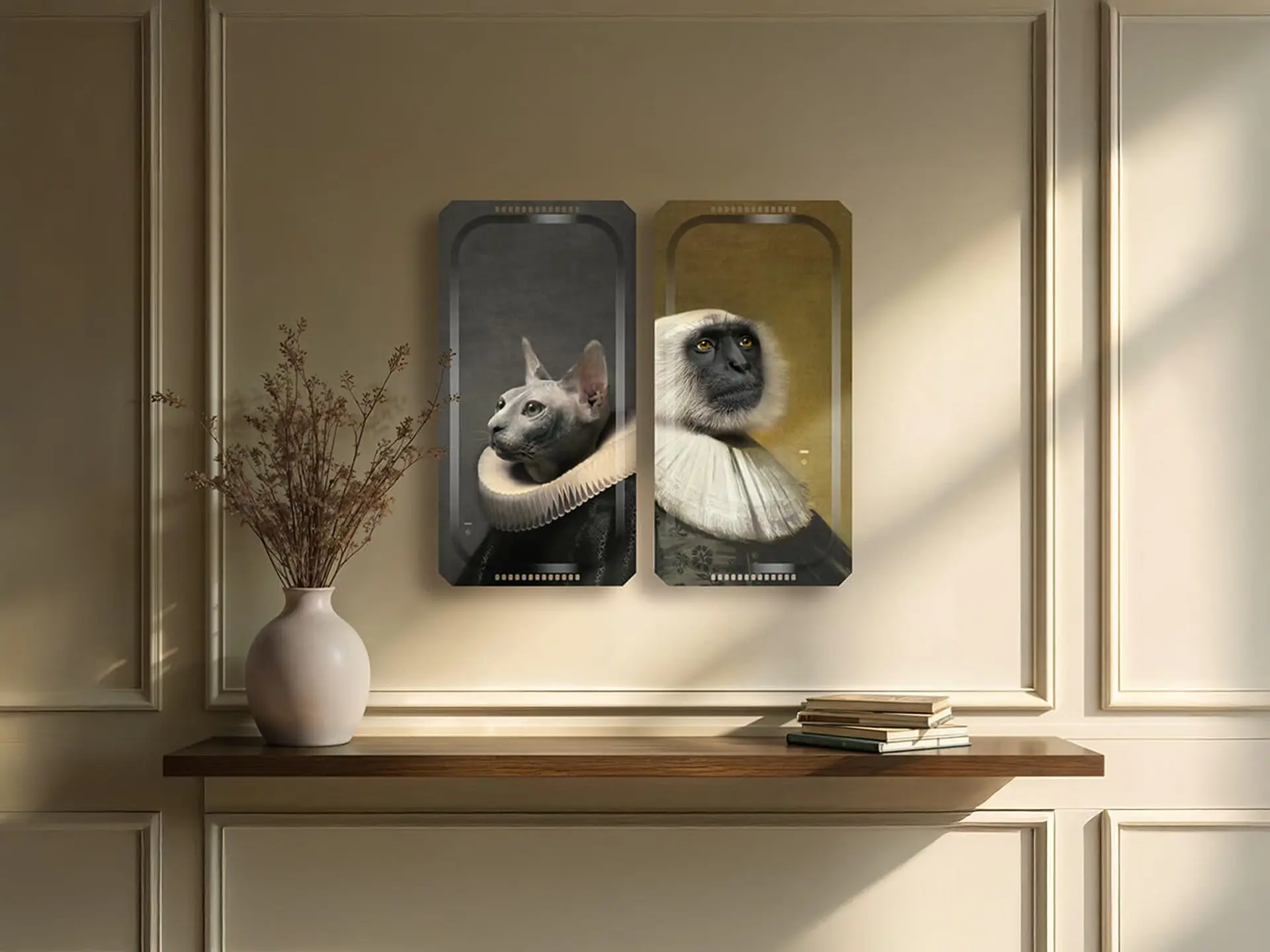 Les plateaux Le Singe et Le Chat, dessinés par Rachel Convers, ne se contentent pas de servir. Accrochés au mur, ils deviennent de véritables tableaux invitant à la contemplation. Disposés à plat sur la surface de votre choix, ils retrouvent leur fonction première et servent avec élégance.